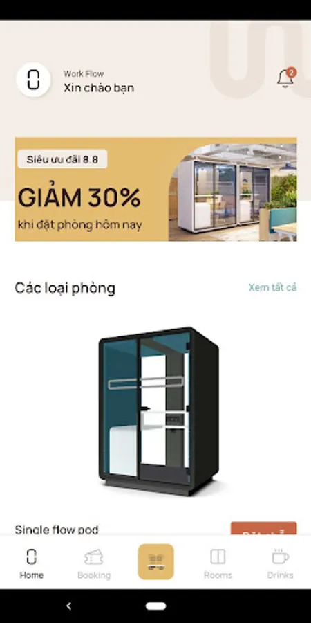Is an application that supports placing pods to work quickly at Work Flow Café & Focus Space with many convenient features such as: