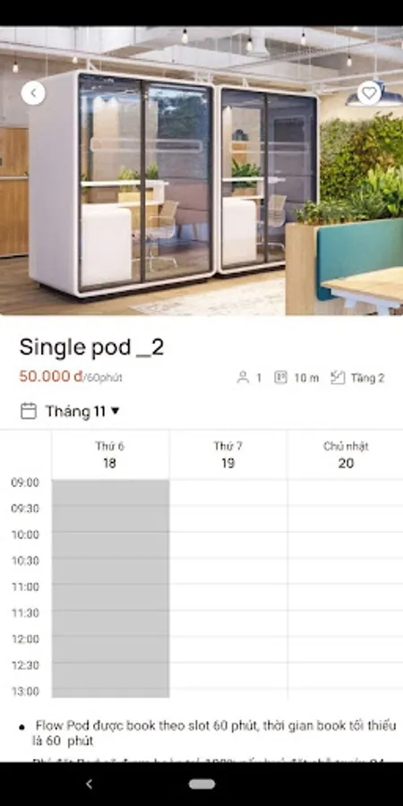 - Set a schedule to work at Workpod intuitively (users know when the pod is empty, when someone has booked)