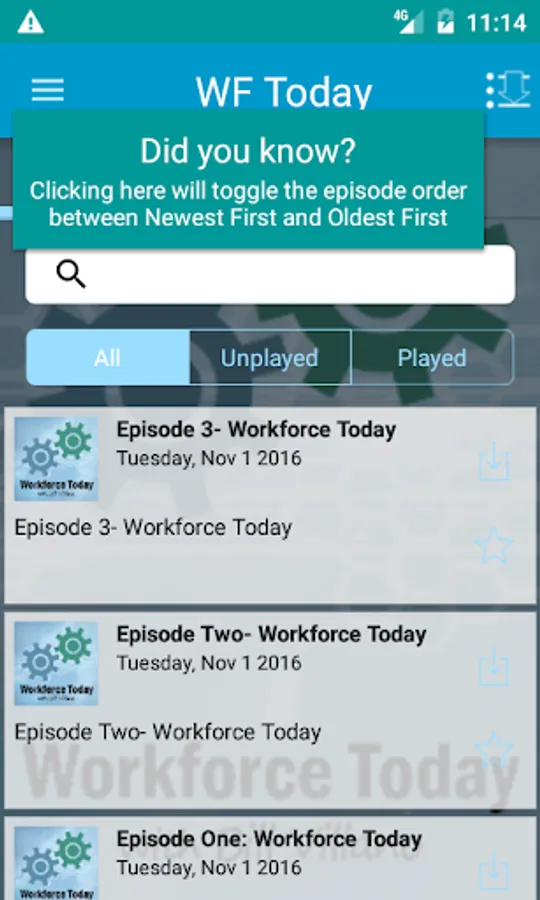 This is the most convenient way to access Workforce Today on your phone. With this app you are always connected to the latest episodes and the show. You can also star your favorite episodes and save them to a list so you can easily enjoy them over and over! This app is complete access to Workforce Today and if you're a fan of the show you won't want to be without it!