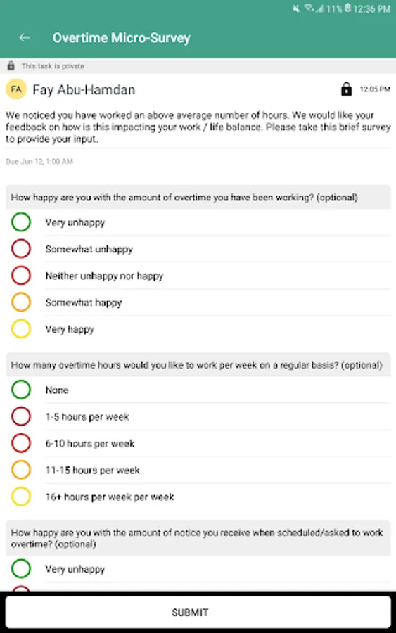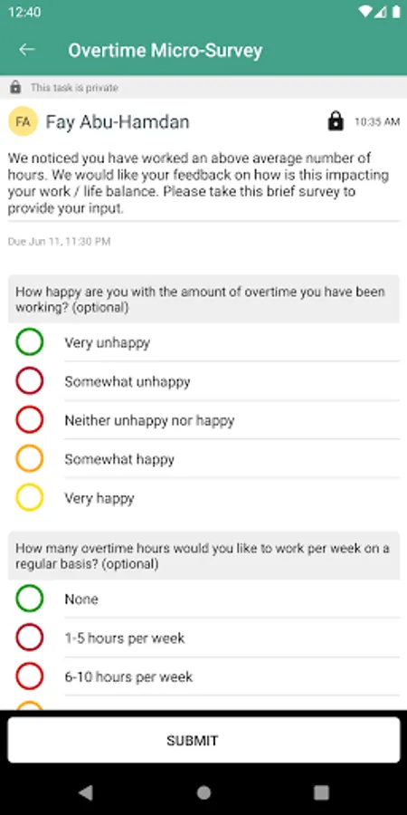 • Trigger actionable, personal, and timely surveys delivered to a specific employee, groups or Broadcast to everyone
