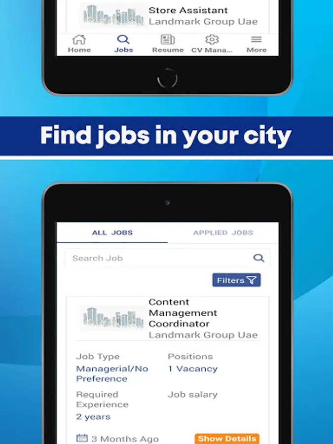 - Register easily with a user-friendly interface and build your CV quickly to be available to Top Companies in the UAE.