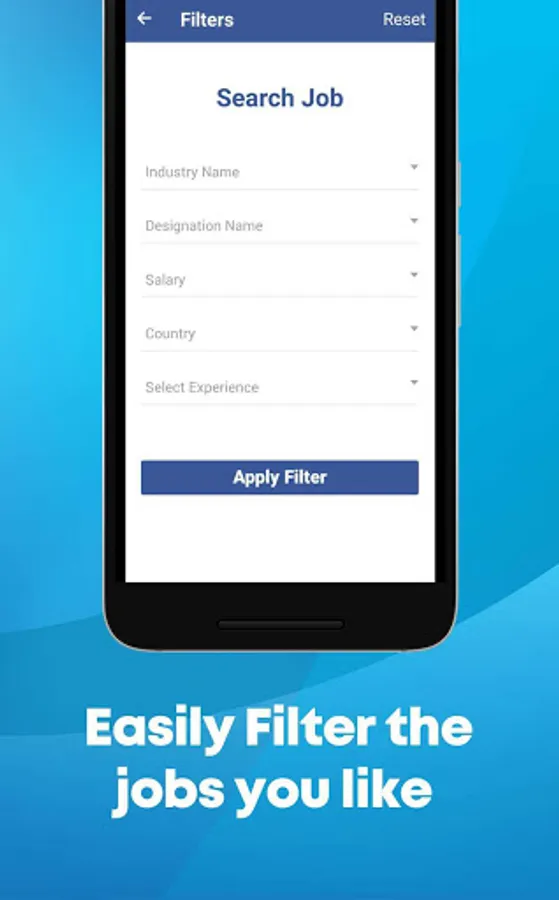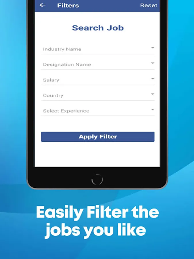- Filter jobs by Industry Name, Designation Name, Salary, Country, and Experience.