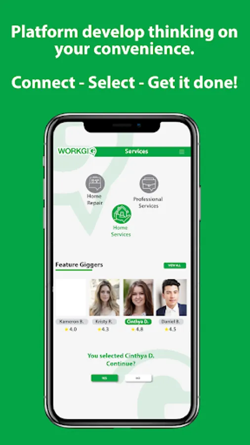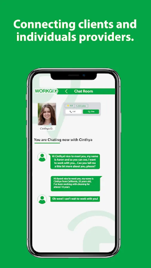 Get connected with WorkGig. Hire our local Giggers professionals who are ready to serve you with the task you are struggling with. From home cleaning, handyman to health and beauty WorkGig got you covered. Get the help you need in just one click. You will be able to get prices, message our Giggers and even hire them on demand directly from the App.