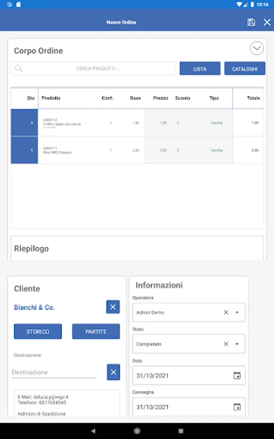 Quick and easy compilation of Orders and Catalogs, all information is always available both Online and Offline.