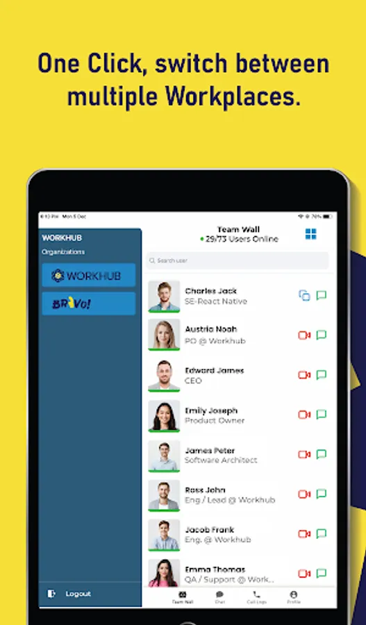 Download the WorkHub Connect App and sign in with your credentials to enjoy video conference software with instant connectivity in your remote or hybrid workplace.