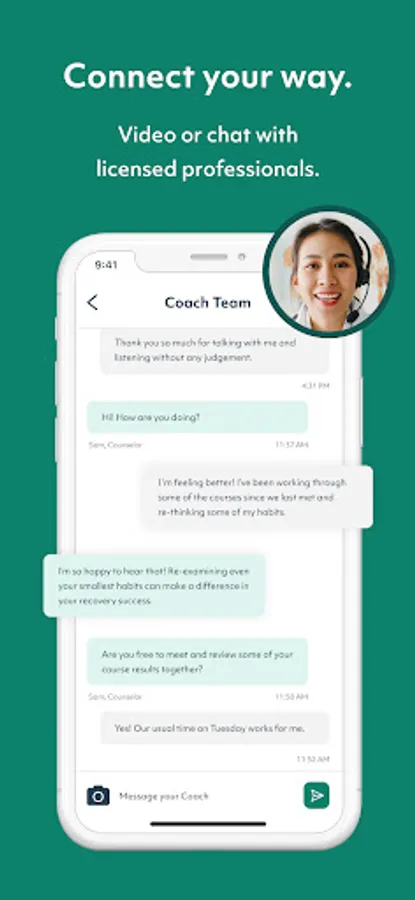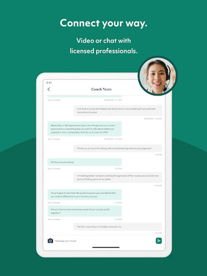 Talk to a clinician or counselor – Schedule your first appointment with your care team. Via in-app video conferencing, meet with an expert in your state who is dedicated to helping you succeed.