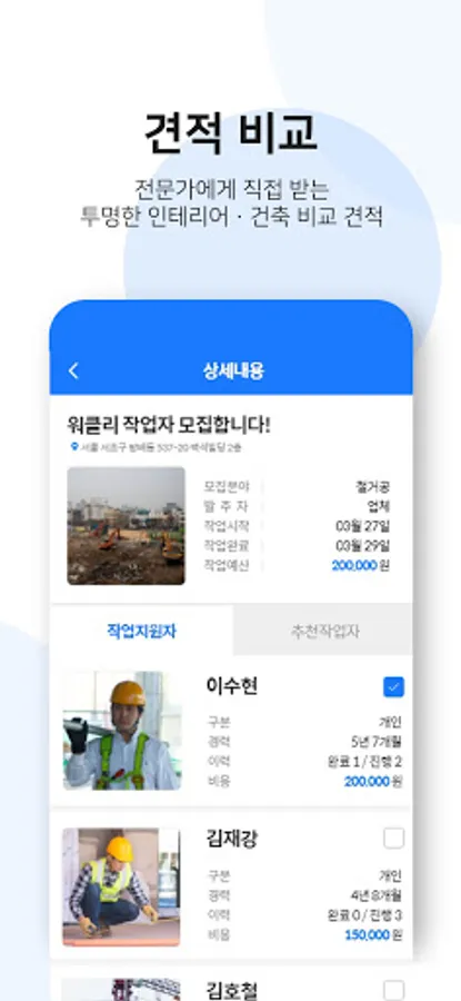 When selecting a worker, the method of selecting from the list of workers who applied for the project uploaded by the client and