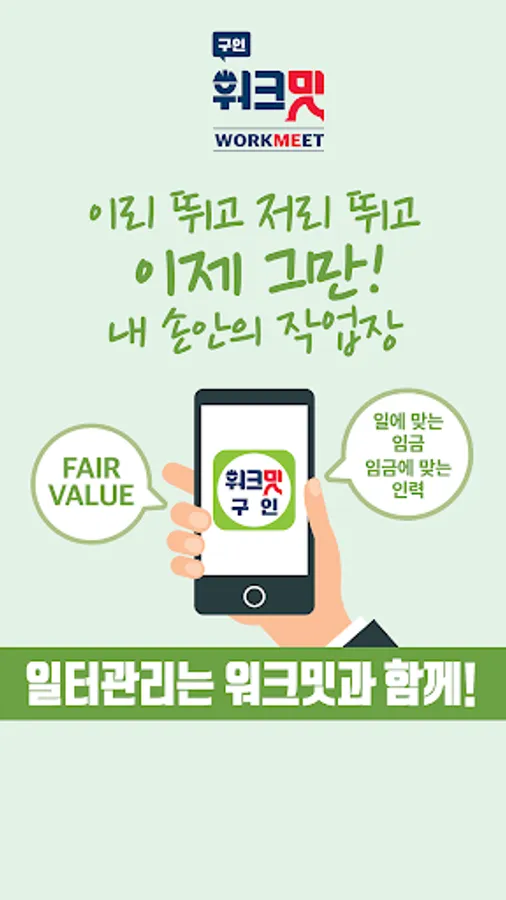 - 소개소일감과 워크밋일감(W일감)을 동시에 제공함으로 인해 현재의 오프라인에서의 구인활동 외에도 돌발적인 온라인에서의 구인을 상황에 맞게 고르게 취할 수 있게 되어, 누구나 일할 기회, 누구나 고용주가 될 기회를 제공합니다.