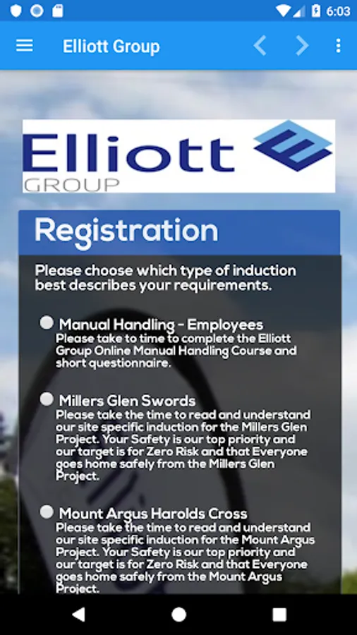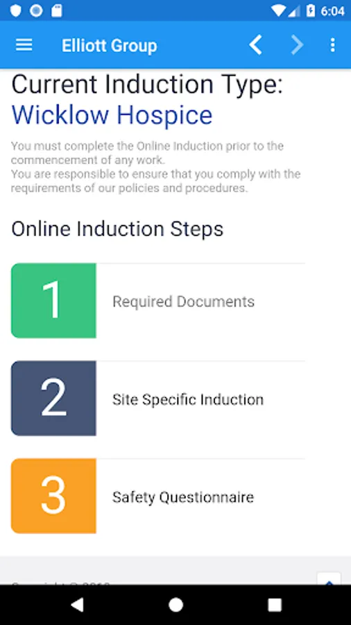 Elliott Group Inductions allows users to access and complete their Online Induction material via the app.