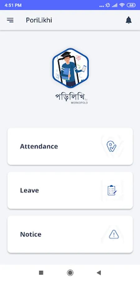 Porilikhi is a geo location based attendance system. It helps the Organization authority to gather attendance information without any external fixed device. Users can checked in using his/her mobile through Porilikhi for attendance entry and similarly checked out for attendance exit. Each user can be mapped to a default location for his/her default Organization, which will automatically considered as approved entry, out side of default location check in /out be considered as valid upon approval of supervisor.