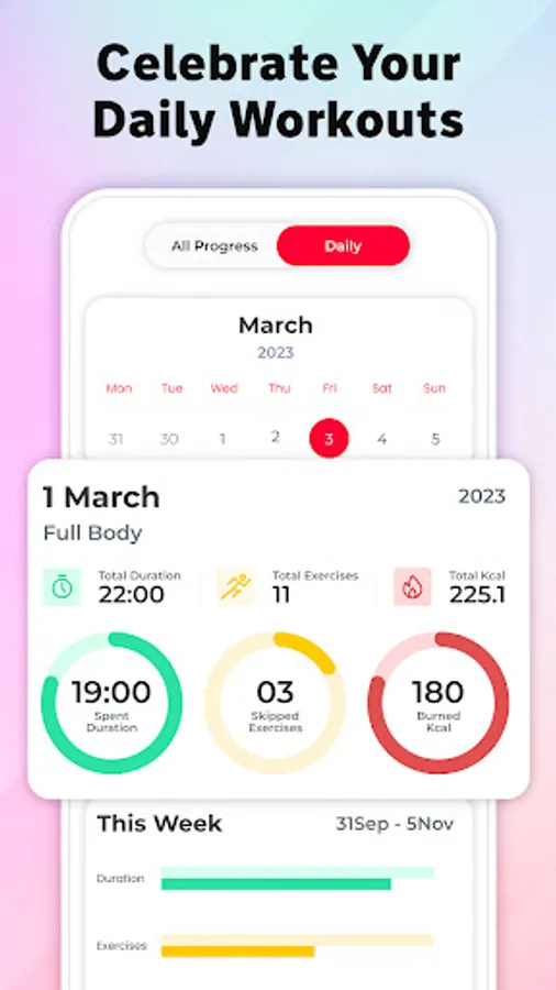 No need to go out to gym as this workout app brings your gym at your home. Give yourself 5 minutes to be fit and healthy. You can easily shape your body by abs, chest, legs, arms workout, butt, lose belly fat and your full body workout by doing simple exercises with the help of workout planner. Build muscles without any equipment or coach with workout free.