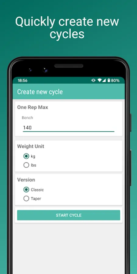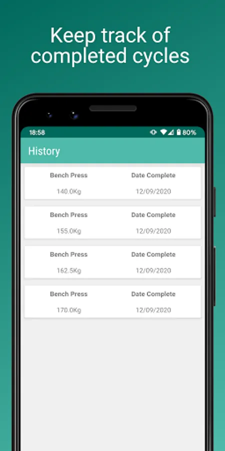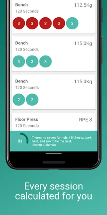 This app will generate cycles for you based on your current one rep max and allow you to track your progress through each session and week. A full history of your completed cycles is stored and you can view your increasing bench press power on a graph.