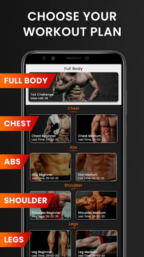 Set your weekly goal in this Home Workout for Fitness. Choose part of body that needs home workout to get into the required body form. From chest to legs, every workout plan is ready to meet the fitness need in amazing total body workout app. If you are interested in full body workout then it requires 28 workout days to get the best results. Become a body builder by watching animated videos, these animated videos ensures that you are performing every exercise perfectly.