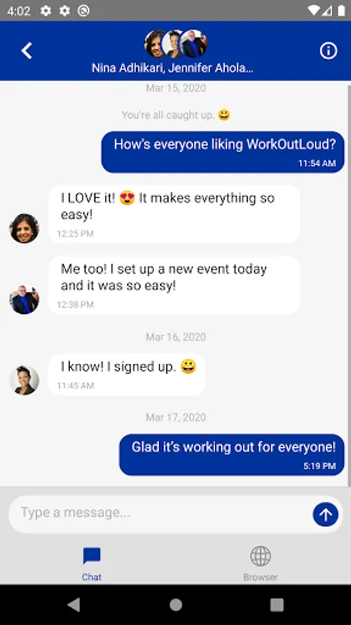The WorkOutLoud mobile app for Android is a convenient and collaborative tool for integrated messaging for any community based on the WorkOutLoud community platform solution.