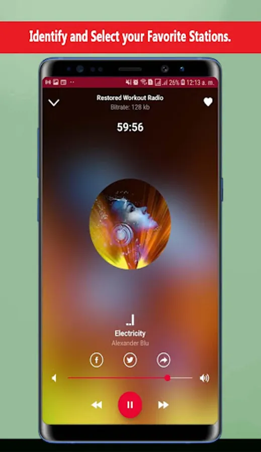 live workout music radio with a modern and elegant interface, plus you have the option to select super quick access to your favorite live workout music gym radio.
