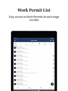 WORK PERMIT, as the name suggests, is an online Permit to Work application. It lets you create, check, approve all your work permits online. PTW Forms with carbon copies which are almost impossible to read are history. With “Work Permit” each party involved have access to the content of the permits of his concern and can approve, refuse, comment online. All critical actions are recorded with time stamps and stored in secure servers for easy access any time.