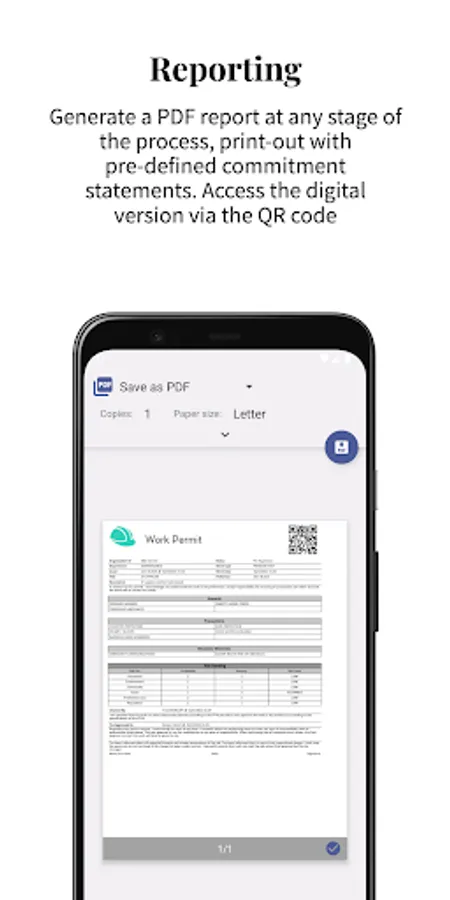 Each work permit will have a unique QR code on the right top of the form. You can read the QR code of a printed Permit form and access the full data via the app.