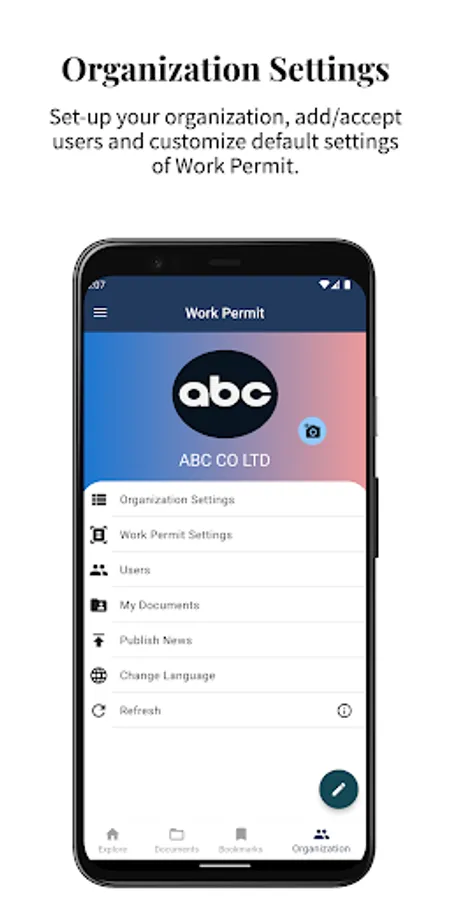 If you have just downloaded the app, the first step is to create your organization by filling out a form. Please keep in mind that the Organization ID shall be unique as it will be referred by all your users while signing up.