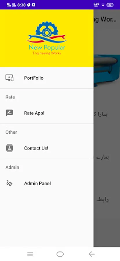It is very simple, useful app regarding big machinery & machinery parts. In this app, user can easily identify different types of machinery, Also pictures & videos of different machineries are also available in this app. As this app will be used by the simple people of different places especially Pakistan so it has been developed in Urdu so that people can understand it easily, they can easily read urdu words, also can see pictures & as well as related videos regarding available for business purposes. Also in this app, there are different types of buttons/functions available(01-Front page, shows welcome screen to user to motivate him to use this app for purchase of machineries(Note: There is no any payment involve in this app mean no in app purchase method in this app, this app is just for business promotion purposes only 02- Information about business 03-Beautiful slide view 04-Contact numbers 05- Complete Address of New Popular Engineering Works 05-Videos of different machineries & machinery parts 06-Location for address 07-PortFolio 08-Admin Panel. In this App, also beautiful pictures & videos have been used in which shows working of different machines etc. There is beautiful splash screen for providing user-friendly environment. In this app, there is special work which clearly shows that this app is related with different type of machines being used for different works. The functionality of APP is so simple that every One can understand use of this app & if he wants to contact with owners of the New Popular Engineering works then he can contact with him through his mobile numbers as well. Also there are mentioned different types of machinery available for sale as well(Note: There is no any payment involve in this app mean no in app purchase method in this app).