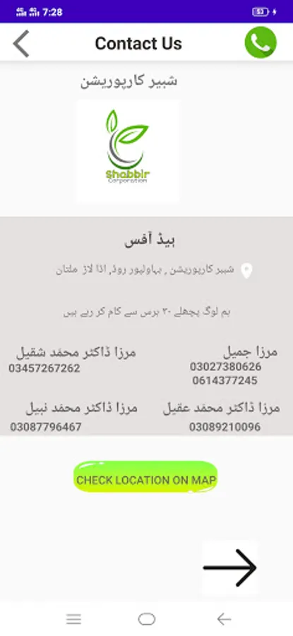 • User can call to the owner of the Shabbir Corporation.