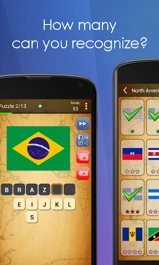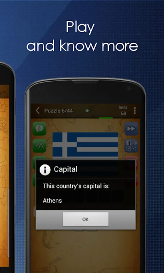 • Use guessing hints if you get stuck, like revealing answer letters or showing capital cities