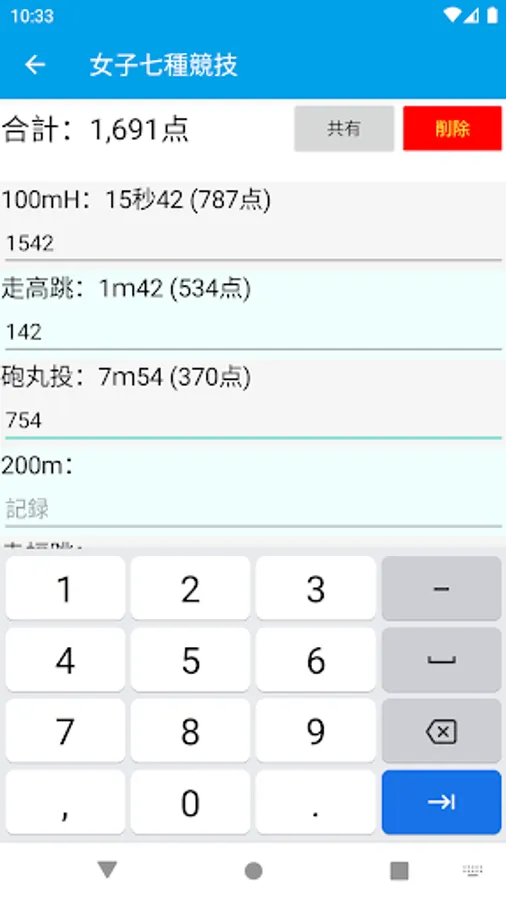 As soon as you enter a number, it will be converted into a record and a score and displayed.