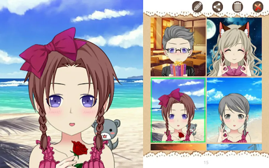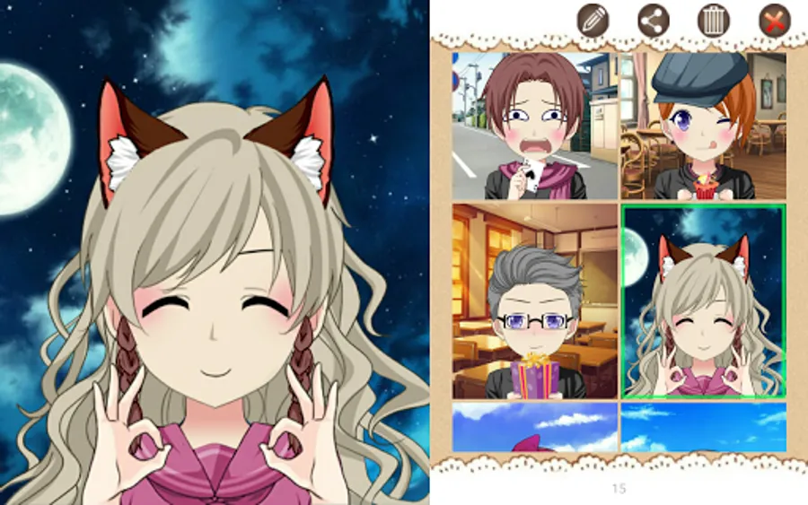 Under control of your fingertip, a lovely avatar can be created in a few minutes. You can store and share your avatar with your friends, or you can upload it to your own blog or share it to facebook, Twitter, Wechat, QQ and Line with your friends.