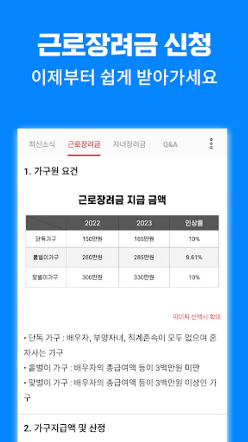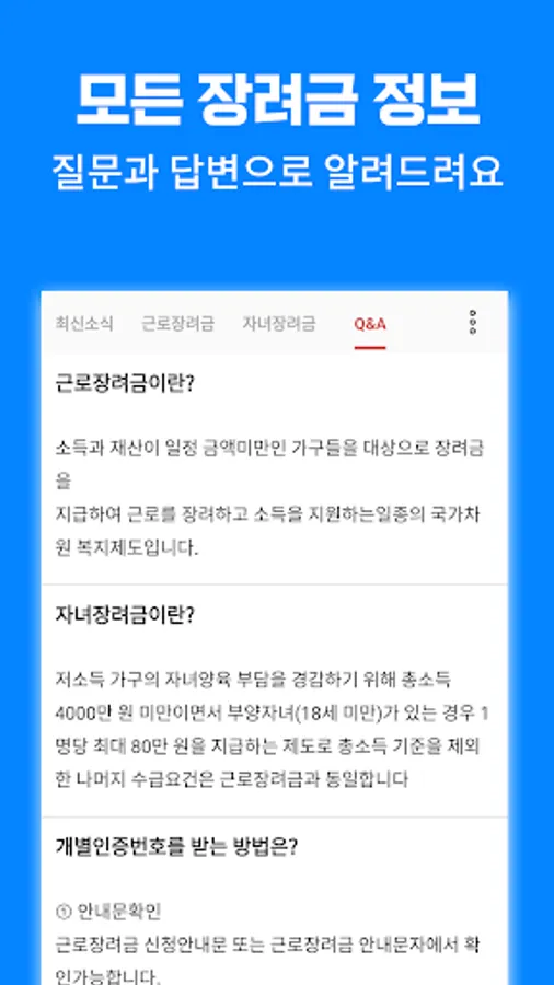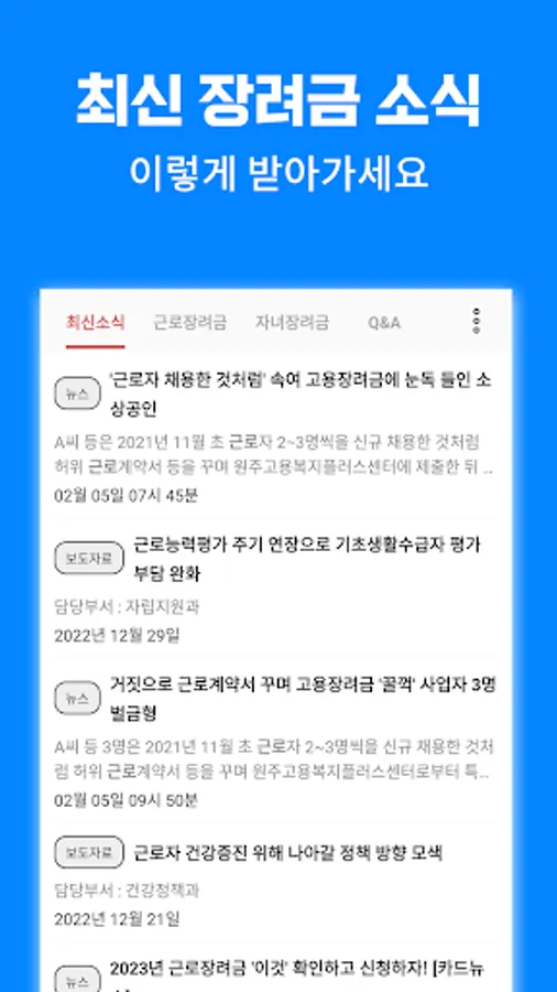 You can easily check a variety of information such as employment incentive payment guide app, eligibility conditions for employment incentives, application method guides, the latest news and frequently asked questions about support funds.