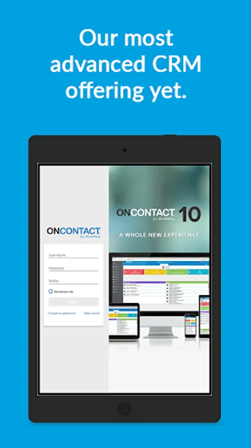 This application is designed to work with the OnContact CRM 10 server solution. An OnContact CRM 10 website is required to run this application. If you’re having trouble logging into the mobile app, please contact your WorkWise representative.