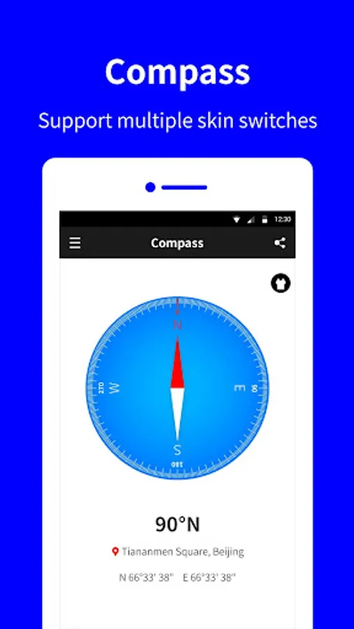 Tips: In order for the compass to accurately align the north direction, it is recommended that you stand in an open place, the screen of the mobile phone is facing the sky, in front of you, holding the shape of the phone with a figure of 8 characters. Draw 2 times, then face the screen yourself, draw 8 words, 2 times, so you can correct the compass.