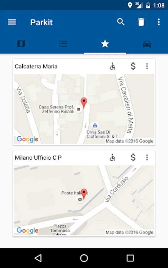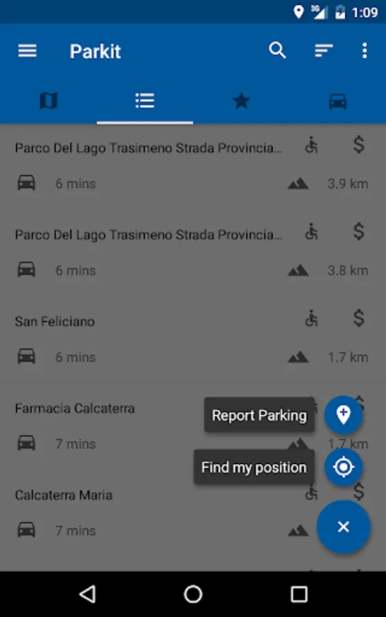 Parkit allows you to easily find a place for your car, thanks to a large list of parks and collaboration of people who can interact with the application through the reporting of new parking lots and places available.