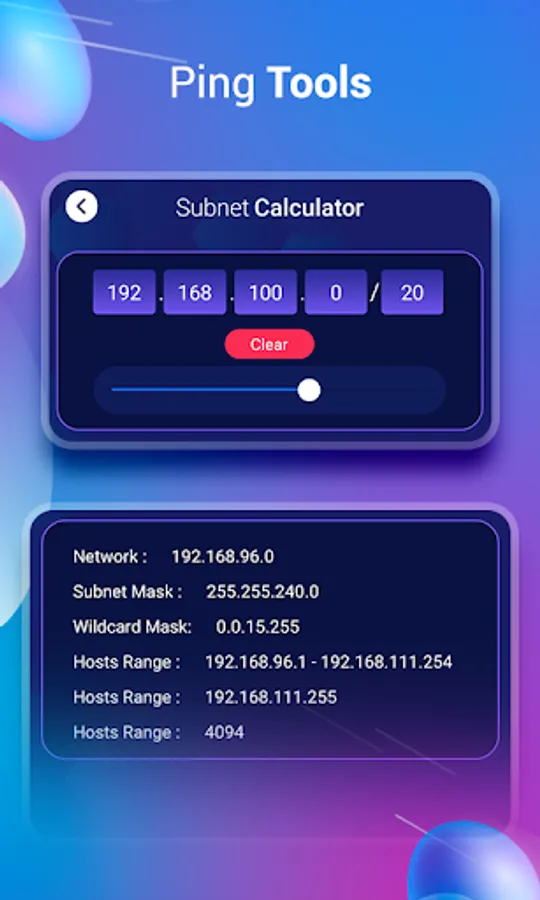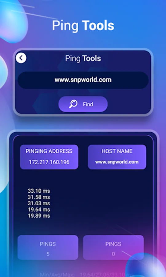 Many a times we face low network connectivity or low internet speed. With the help of Network tools app you can get all all information regarding network like - WiFi name, external IP, Mac address Ping data, DNS server & more.