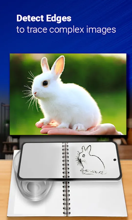 Using this you may learn and practice drawing. Also make tracing an image easy. Just select an image from the app or gallery apply filter to create image traceable. The image will appear on screen with camera open. Place phone about 1feet above and look into the phone and draw on paper.