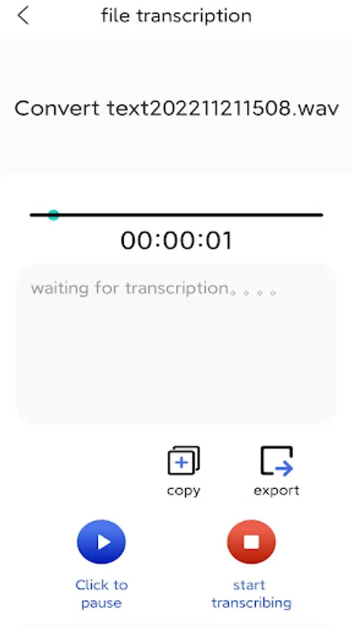 2, Transcribe Audio to Text App also supports transcribing audio files to text. Transcribe Audio to Text App will scan your mobile folder you choose and list all the audio files of your Transcribe Audio to Text ones. Find your files prepared in advance on the main screen and then click play button.