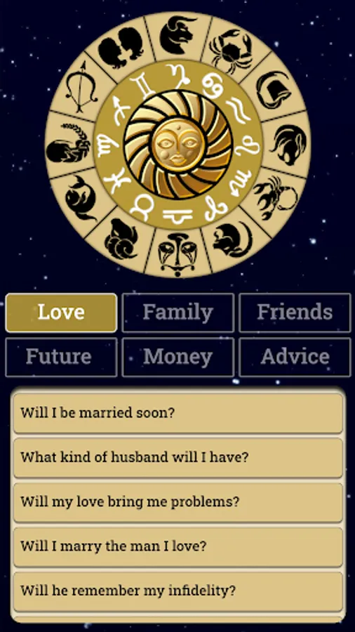 Wheel of Fortune is an oracle that will answer almost any question. Choose your question on the topics of love, family, friendship, work, or just get sage advice. Just spin the wheel and in a couple of moments you'll get an answer to your question.