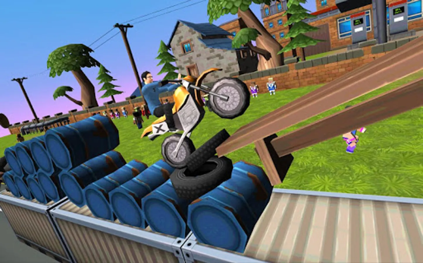 If you like Motocross or Trail Bike sports this game is special for you! Also if you do not like those sports but still love stunt games you can give it a try because the game is 100% free! Try to become better every racing track and maybe you can finish all levels with a 3 star score. Collect all the golden coins on the road by using your driving skills. What are you waiting for? Jump on your motor and race through the cartoon streets!