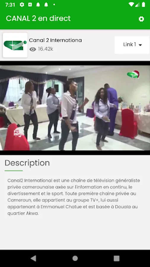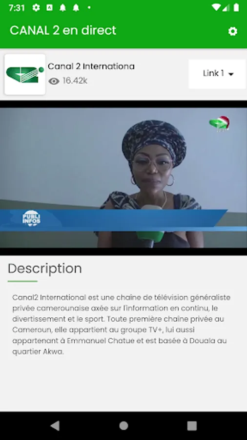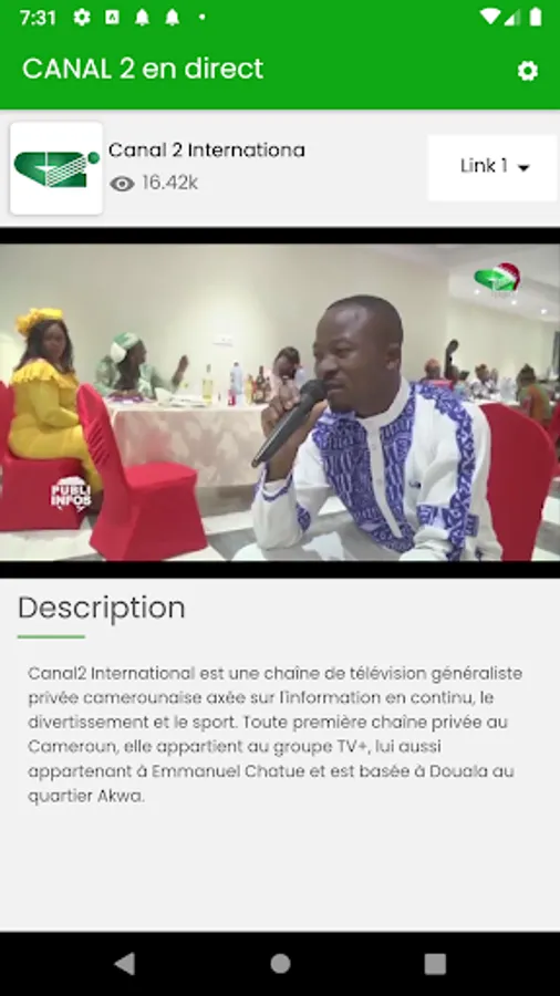 Canal2 International is a Cameroonian private general-interest television channel focused on continuous information, entertainment and sport. The very first private channel in Cameroon, it belongs to the TV + group, also belonging to Emmanuel Chatue and is based in Douala in the Akwa district.
