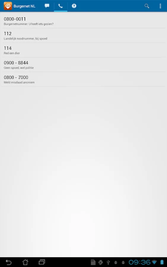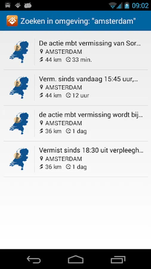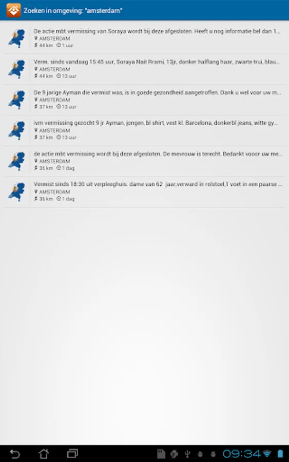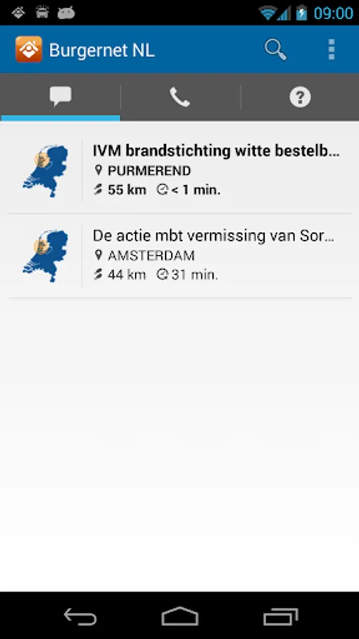 The Burgernet messages received are displayed in an organized list and can always be seen again afterwards. There may also be sought Burgernet messages in a given environment. Using the app