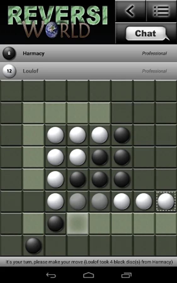 Reversi World is a device-to-device communication game in the World Board Games series based on the classic board game Reversi.