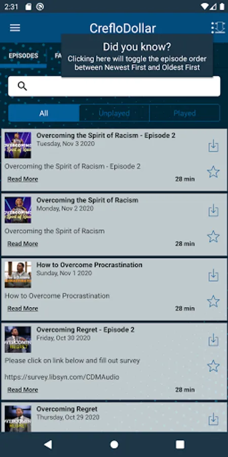 With this app, you have the encouraging and life-changing wisdom of the Changing Your World Podcast with Creflo Dollar right at your fingertips, 24/7! You can start your favorite episodes and save them to a playlist so you can easily enjoy them again and again! With this app, you are always connected to the latest premium episodes from the Changing Your World Podcast with Creflo Dollar, so tune in whenever you need to be edified, no matter where you are!