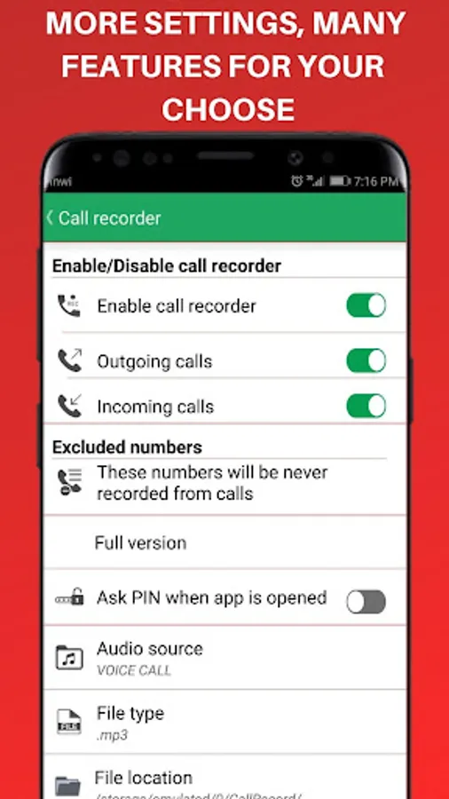 There are many functions to record callsautomatically, everything you need in this Auto call recording application