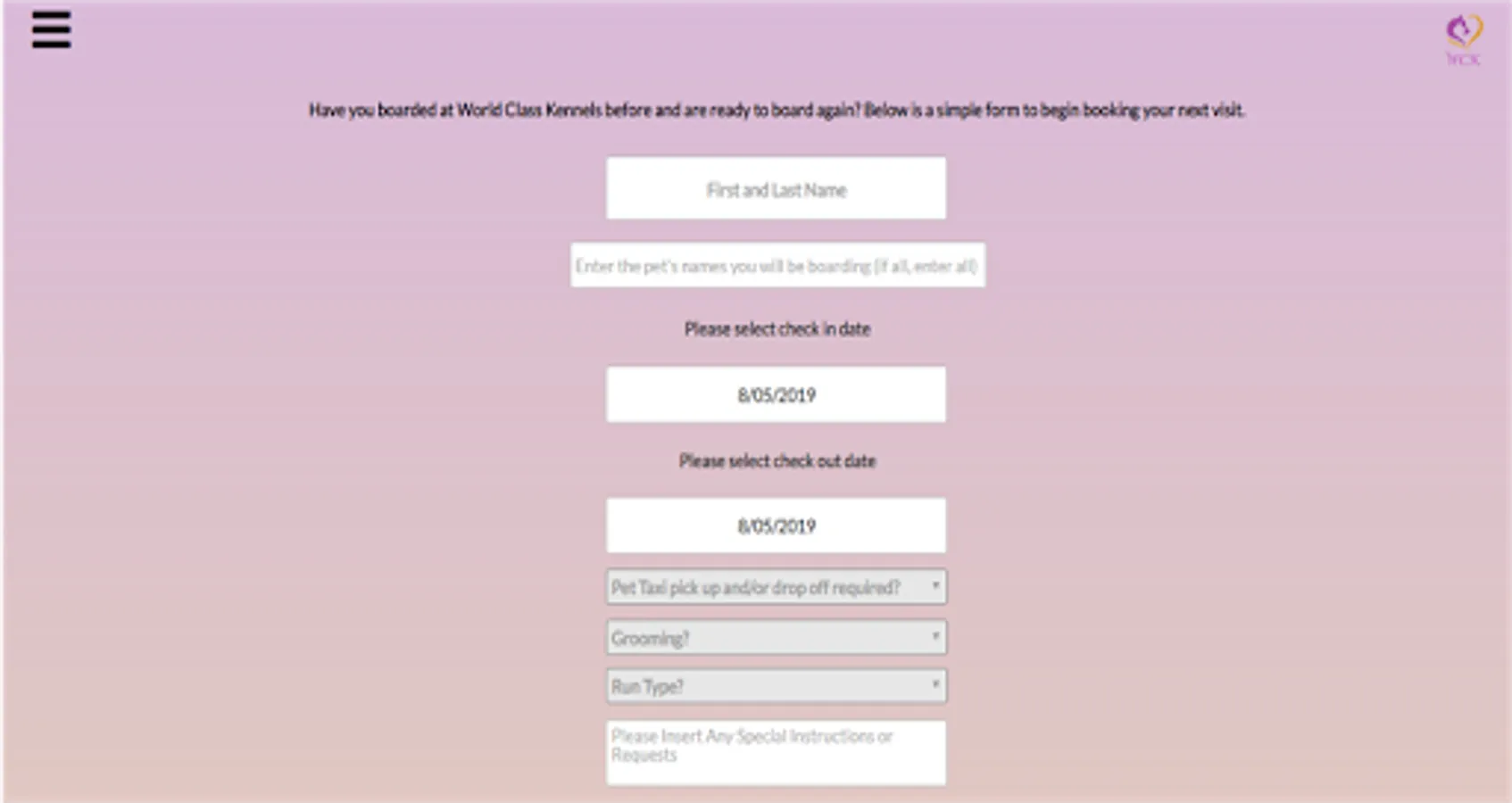 World Class Kennels unites pet owners and provides them with a centralized hub that they can turn to for everything pets! Socialize with fellow furry friend owners, store pet information and book your next stay at World Class Kennels!