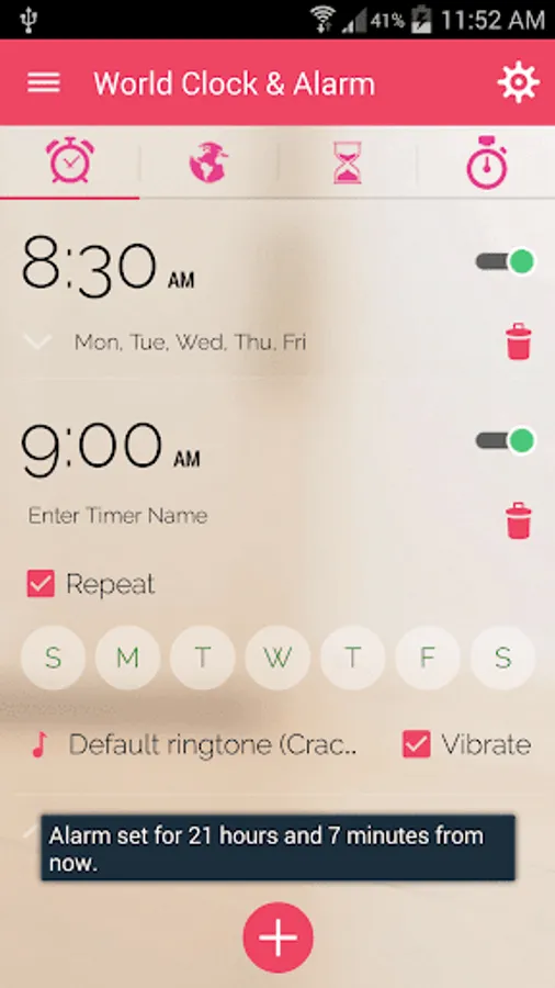 * Multiple Alarm Clock Times available for single Days and repeating option.