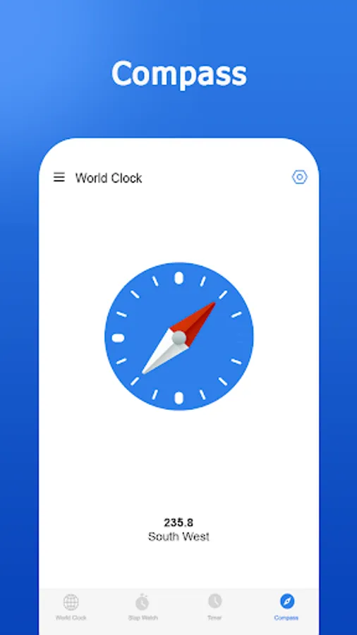 World clock for android also provides you compass for the navigation of directions. If you wanted to know about qibla direction, then use compass and navigate the Qibla direction. It is very useful for Muslims because they have to offer their prayers according to qibla direction. So you can find direction with the help of this directional Compass β smart compass for android.