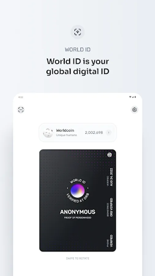 It starts with World ID, your human passport to access the new online world. Verify it privately with an Orb, and then use it to seamlessly sign in to websites, mobile apps and crypto dapps proving you’re a unique and real person without sharing personal data like names or emails.