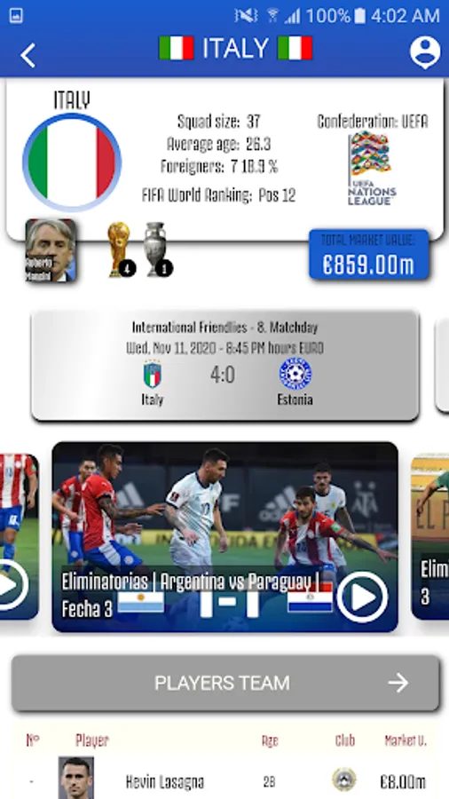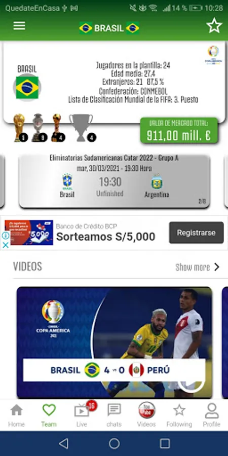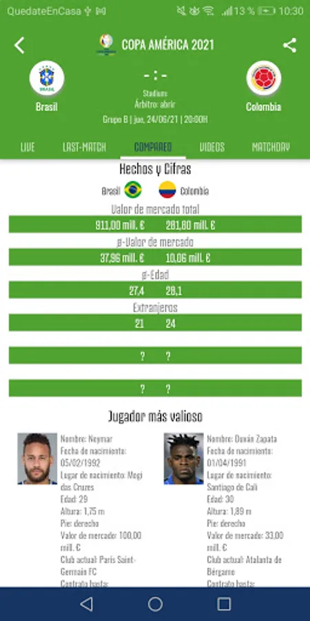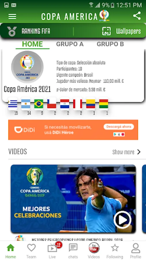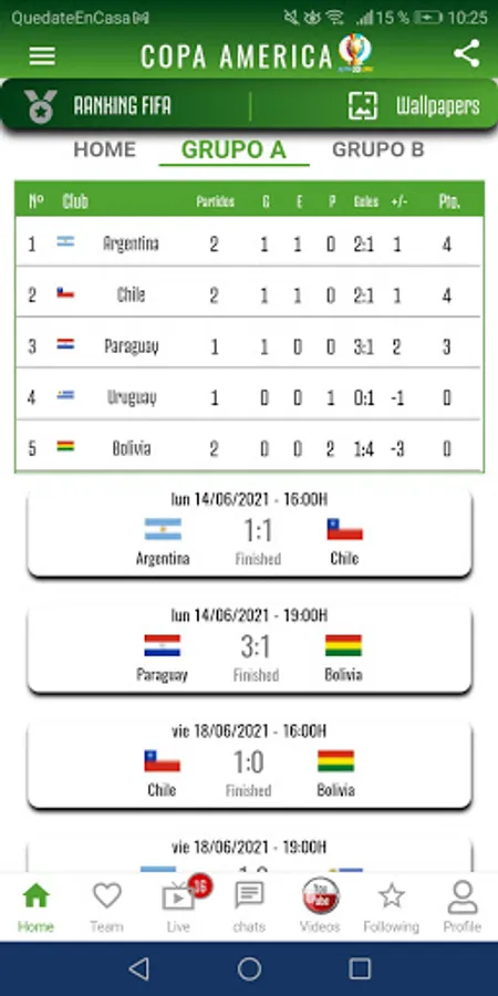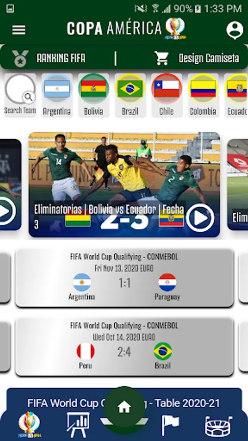 The Best Soccer app for the Copa America 2021 with extensive information of the teams and Live results.