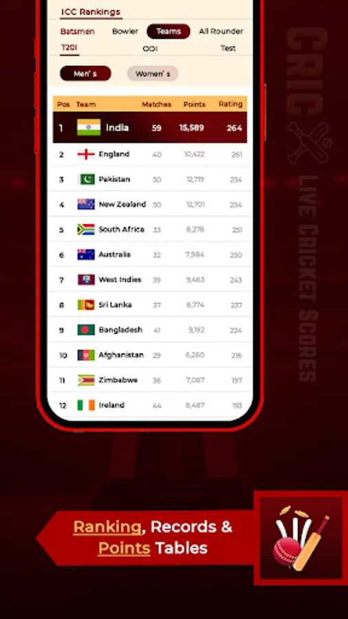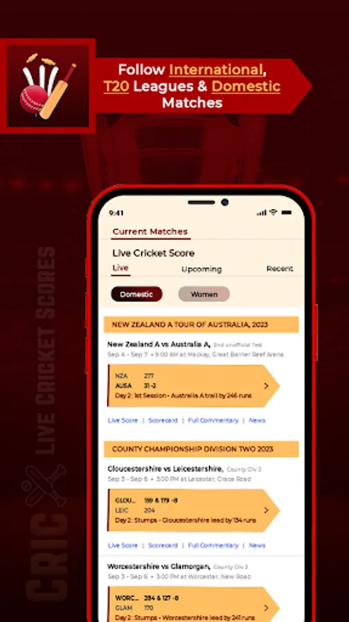 CrickX - Live Cricket Scores is committed to providing you the best Live Cricket Score updates of every cricket match along with: