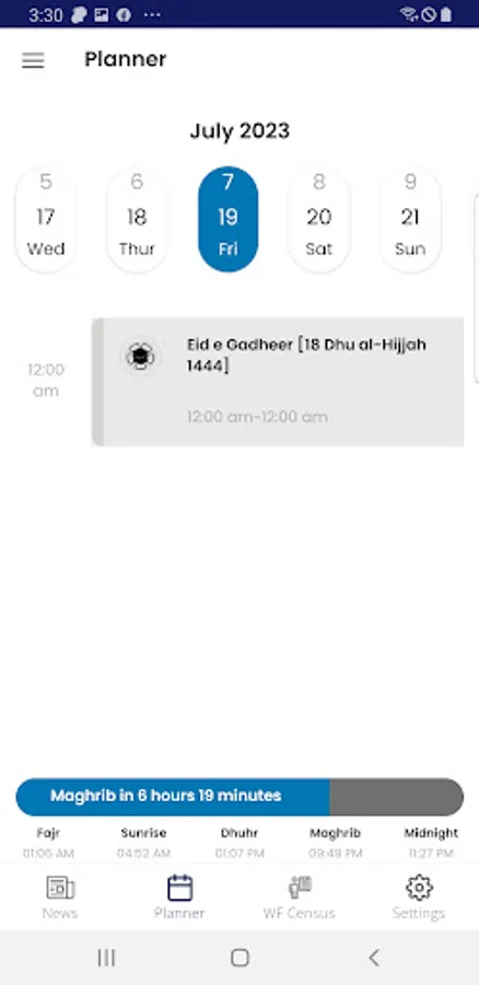 Wf Central is a calendar app which shows events on specific date