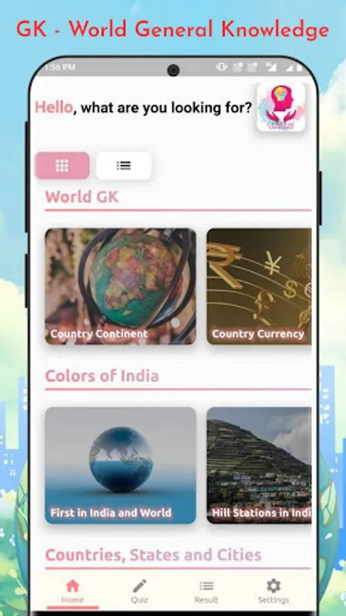 GK - World General Knowledge Quiz Trivia improves one’s general knowledge about India as well as the world.