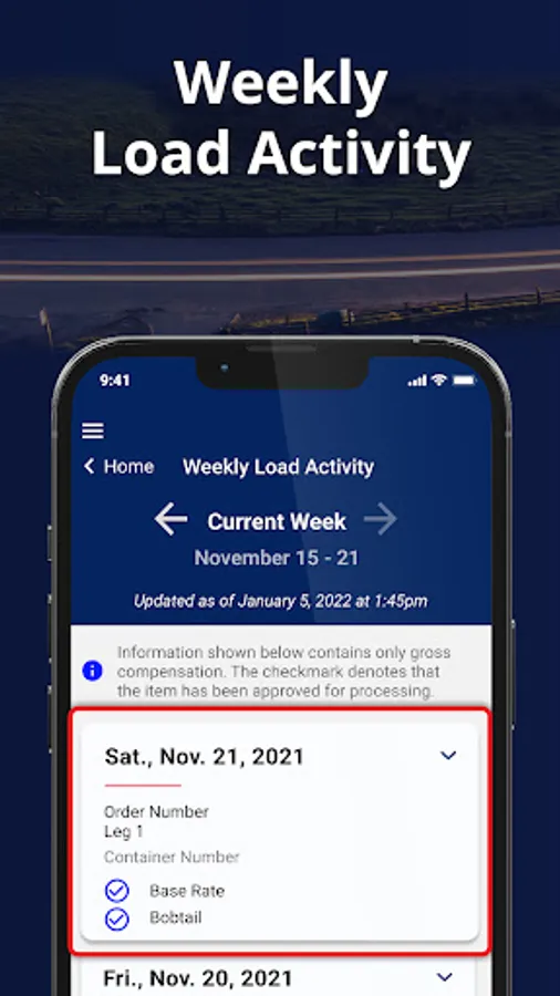 Easily track your pay and see dray, fuel and accessorials for each move completed